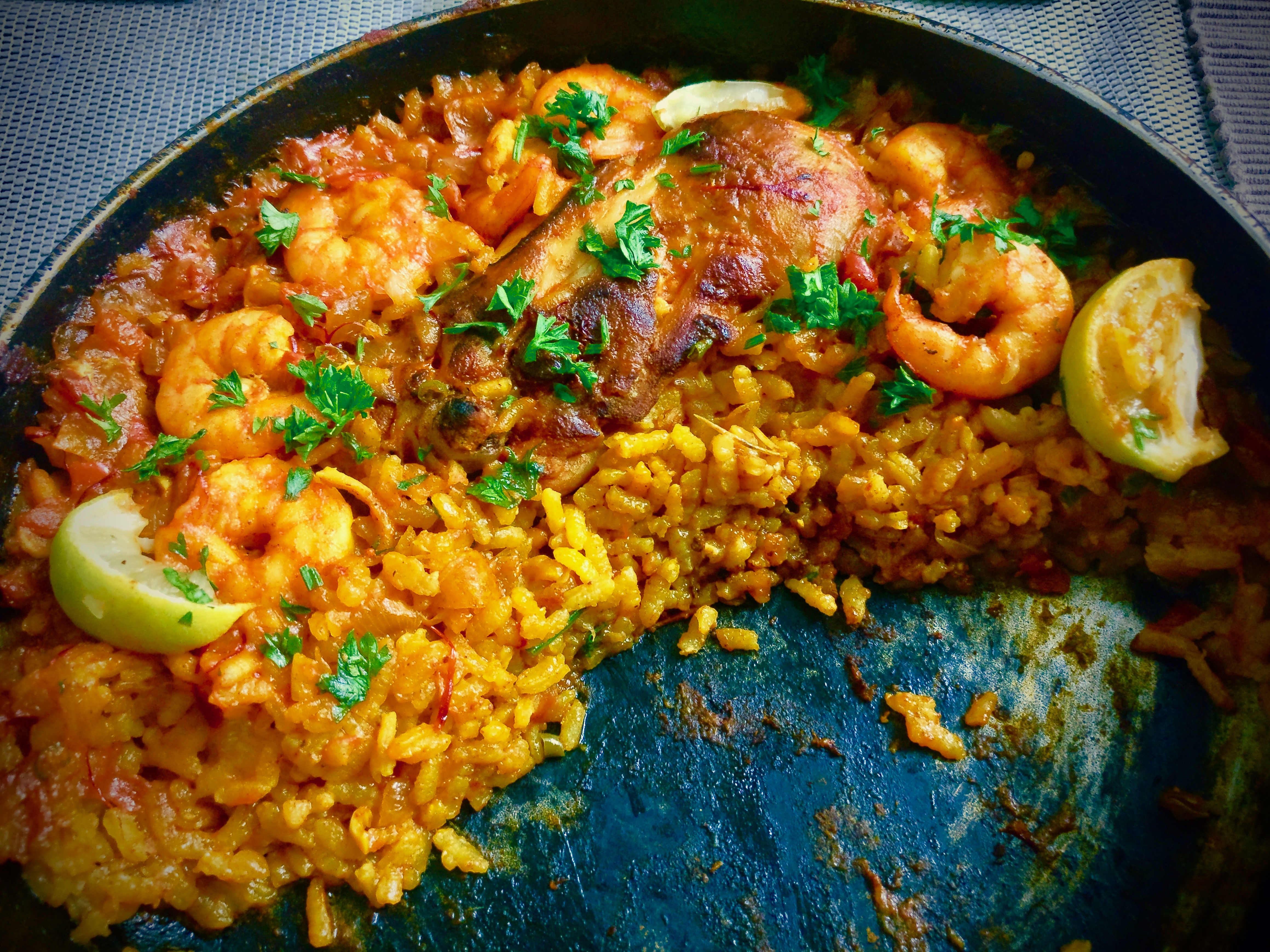 This is an easy to make, supremely popular and flavourful Spanish rice dish that uses chicken and prawns for a complete meal!