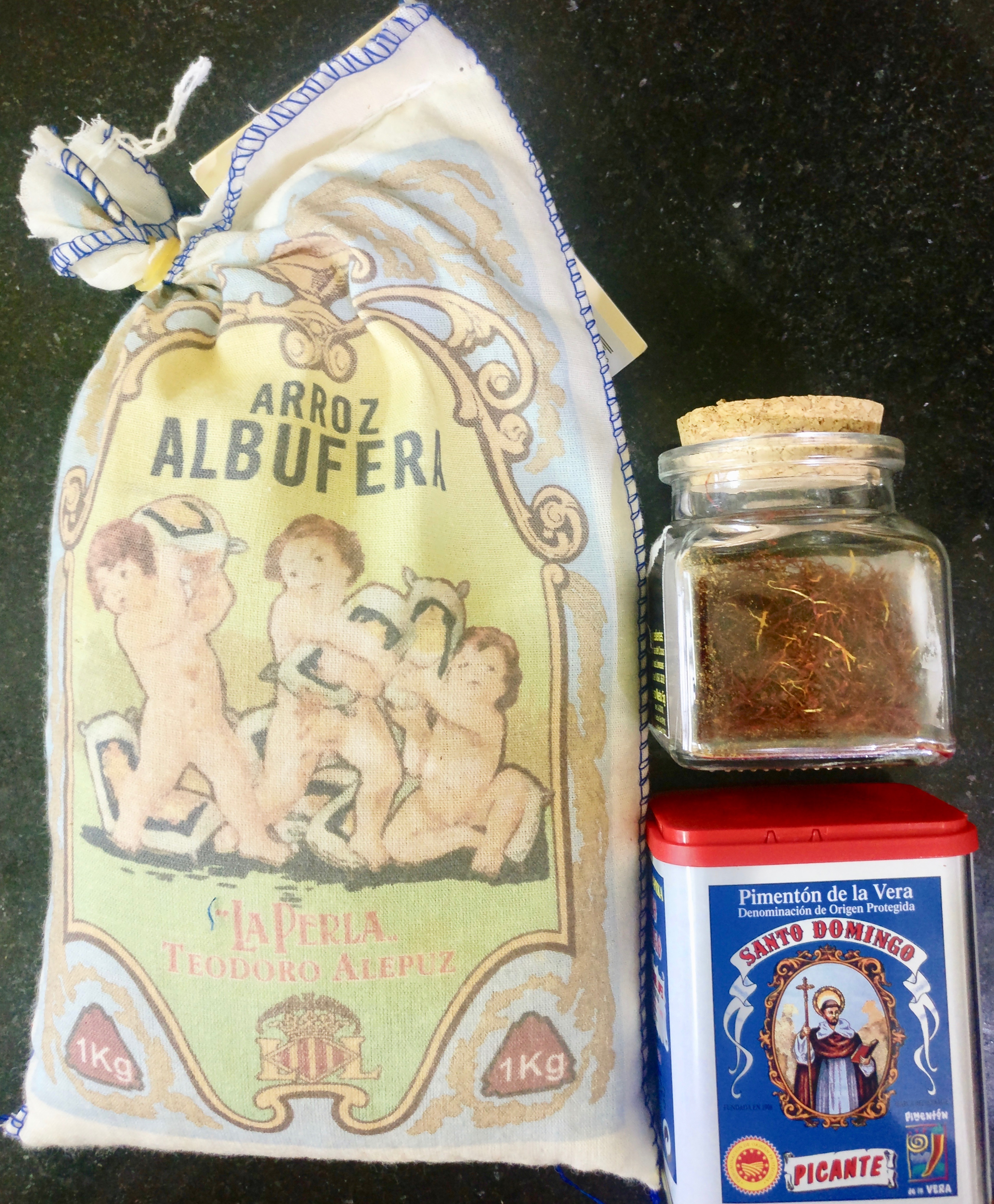 Recently, I had the good fortune of receiving a hamper of pantry items from Spain which included some lovely pimenton del a vera (smoked paprika) in dulce (sweet) and picante (hot) varieties, Spanish saffron, and Albufera rice (a fat, short grain variety which is a cross between Bomba and Senia). According to me and based on tons of reading online, this is the holy trinity of any Paella recipe – the rice (traditionally Bomba), and the paprika.