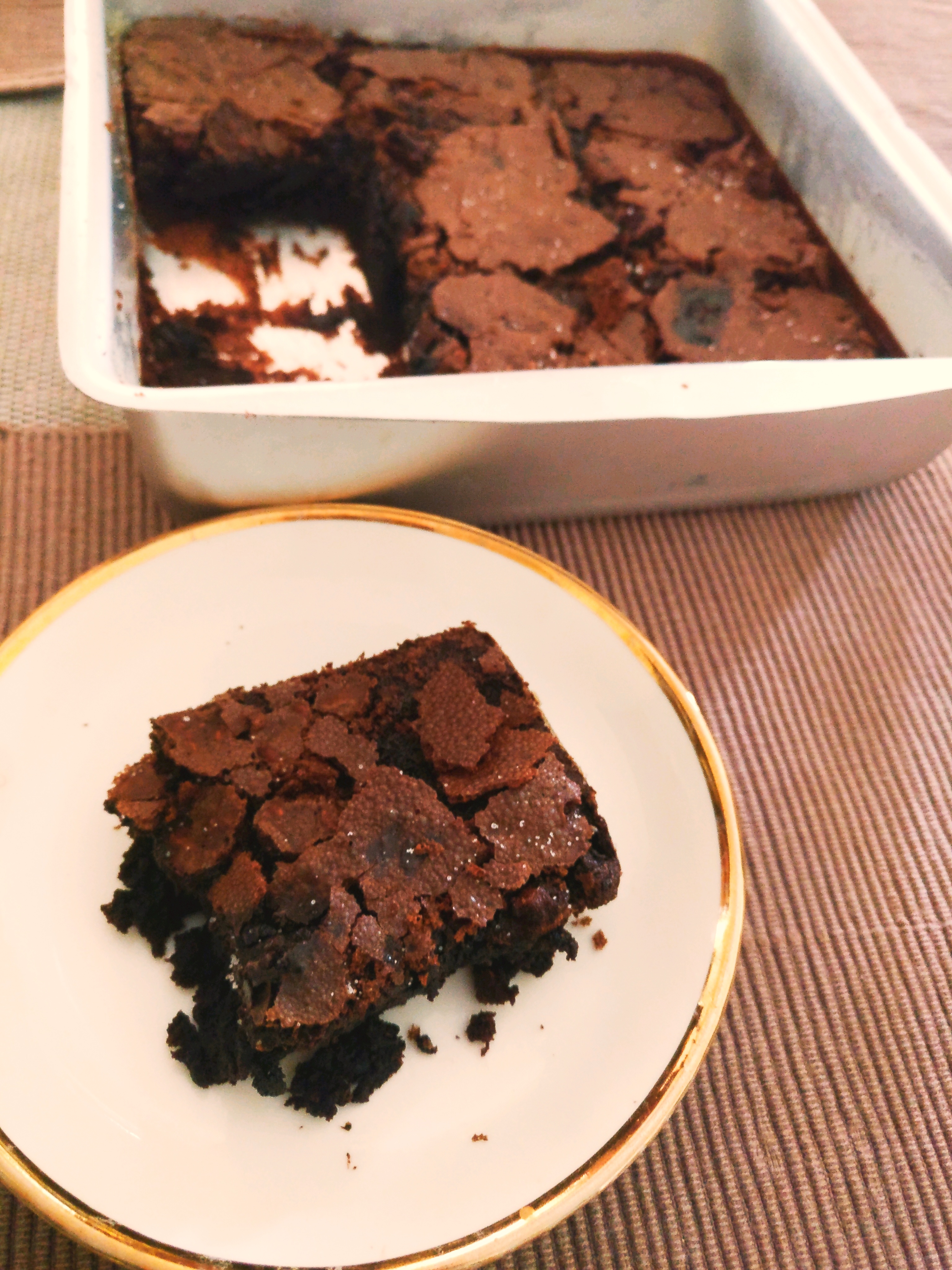 Sea salt, to sprinkle on brownie (or 1 pinch regular table salt!)